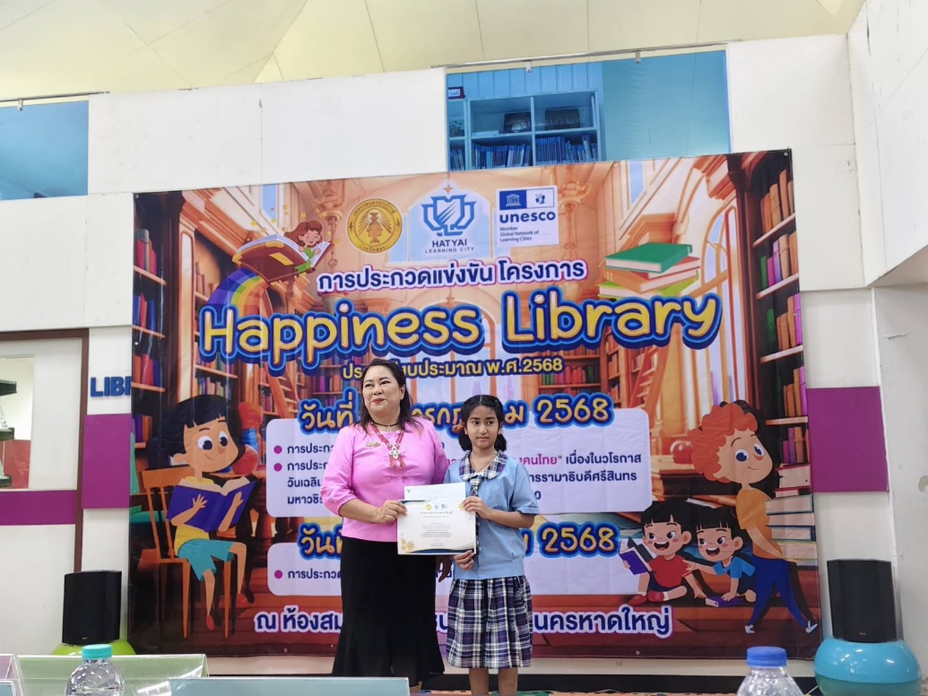 ขอแสดงความยินดีรางวัลชนะเลิศ จากการแข่งขันเล่านิทานคุณธรรม กิจกรรมงาน Happiness library ???? ประจำปี พ.ศ. 2568